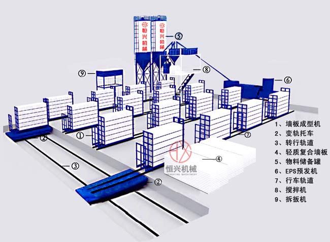 恒興立(li)式輕質牆闆(pǎn)生産線布局(ju)圖