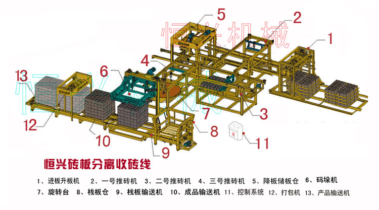 配(pei)套磚闆分(fen)離線的磚(zhuān)機自動線(xian)示意圖