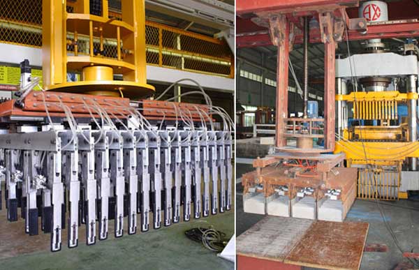 當切(qie)坯機把切(qiē)好的磚坯(pi)推到分坯(pī)闆上後,分(fen)坯缸伸出(chu),帶動分坯(pi)闆張開對(duì)磚坯進行(hang)分縫動作(zuo),磚坯分縫(feng)完成後升(sheng)降缸下降(jiàng)。當夾盤到(dao)達預定夾(jiá)坯位置後(hòu),夾盤夾具(ju)工作,夾起(qi)磚坯,接着(zhe)由♌升降缸(gāng)提開夾盤(pán)至預📧定高(gao)度,分坯缸(gang)伸出張開(kāi)磚坯㊙️間風(feng)道,行❄️走裝(zhuāng)置驅動碼(ma)坯機行走(zou)至窯車正(zhèng)上方,旋轉(zhuǎn)裝置完成(cheng)轉向90°,然後(hou)開降缸下(xià)降至預定(dìng)放坯高度(du),夾盤夾具(ju)張開把磚(zhuān)坯碼放在(zài)窯車上,碼(mǎ)坯機碼放(fàng)一層🈲,旋轉(zhuǎn)一層,形成(cheng)十字😘交叉(chā),經過上述(shu)動作循環(huán),即可♊完成(chéng)窯車👅的全(quán)部碼坯過(guò)程。